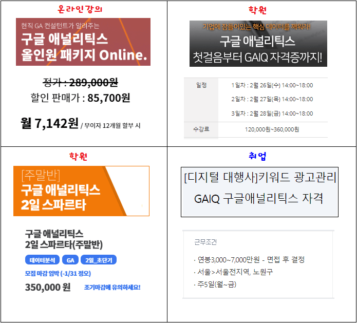 | 구글 애널리틱스 자격증(GAIQ) 합격!! (이틀만에 무조건 가능ㅎㅎ) (123) | 2020.02.17 |