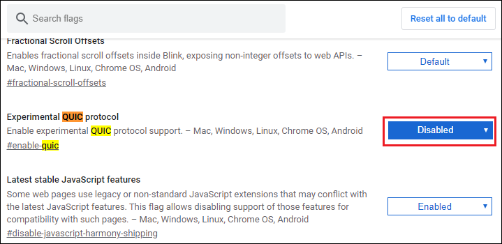 Experimental QUIC protocol이 검색되었습니다