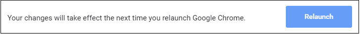적용완료 후 다시시작(Relaunch) 버튼을 누르면 크롬이 닫힌 후 다시 시작 됩니다.